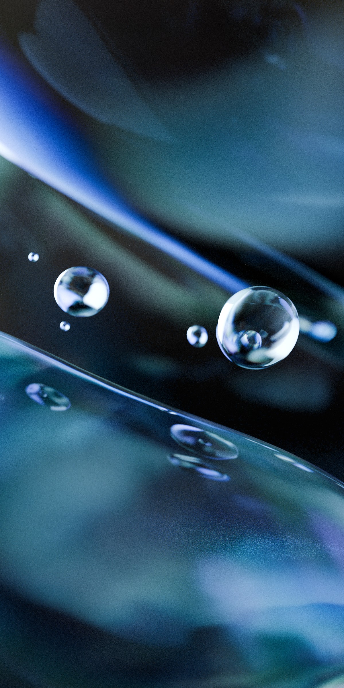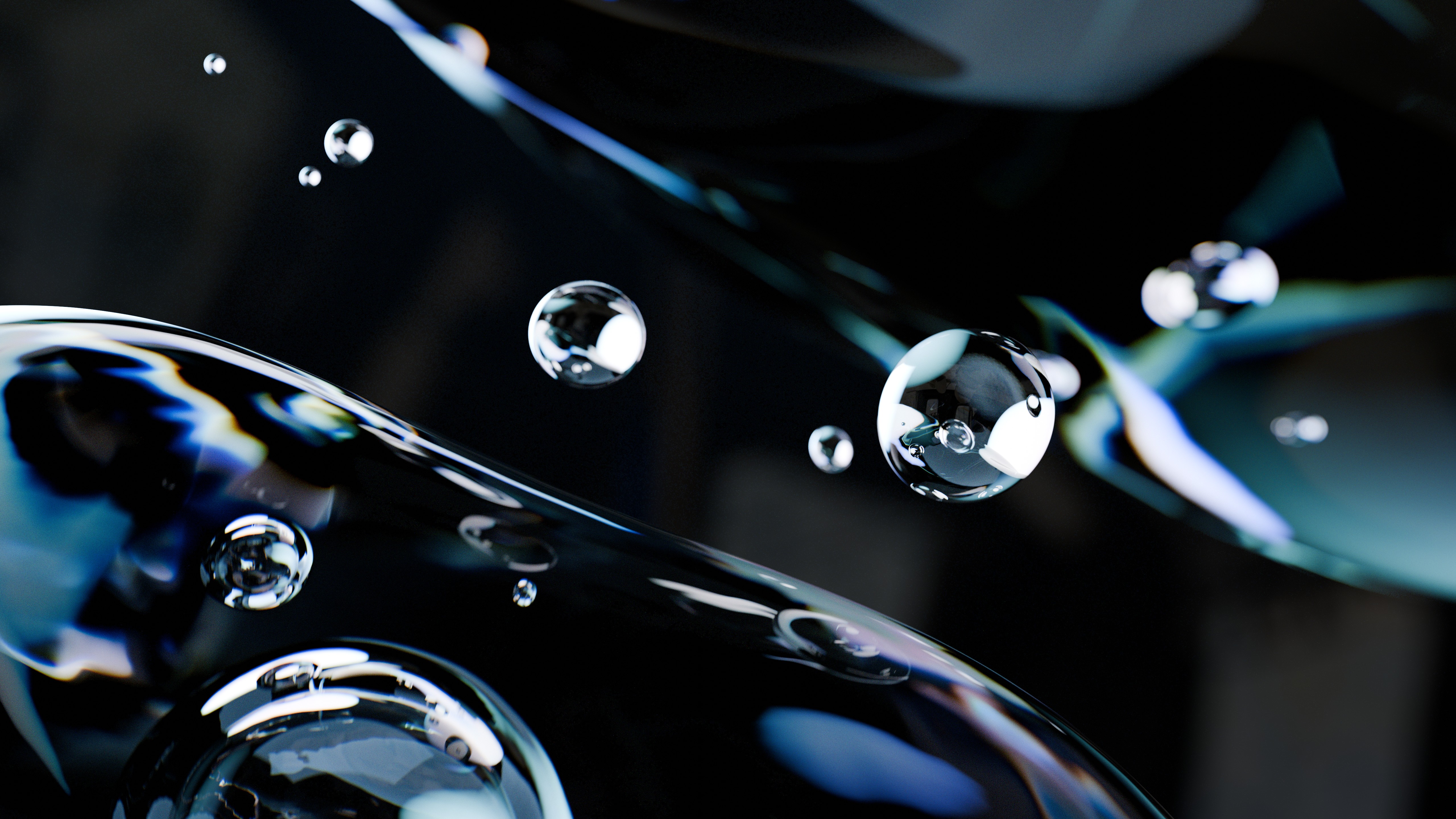 This year, I wanted to try something built around crisp edges and definite forms. I picked the theme of water droplets floating in space, and I still made heavy use of the dispersion effect but in a far less extreme and unrealistic manner. Artistically, the challenge with this one was in the handling of negative space. With light being both refracted through and reflected off the droplets and larger blobs, composing the scene was surprisingly difficult.