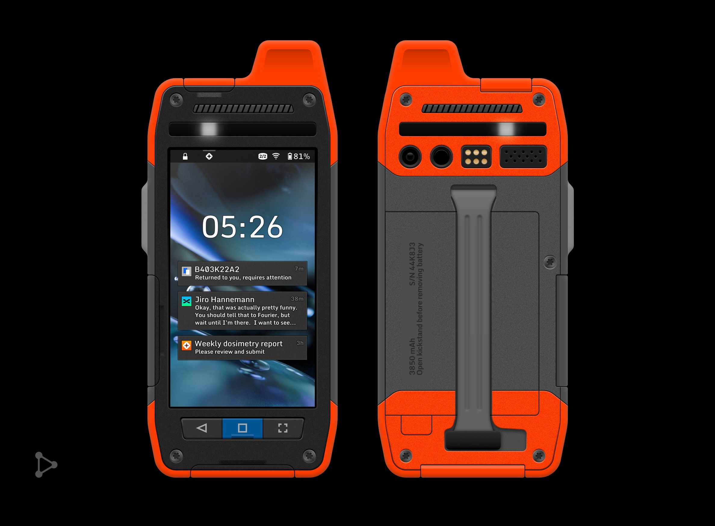 A purpose-built information workspace and safety device, designed to fit the needs of those who work deep underground, the high vacuum of space, or anywhere in between. It's thick and heavy, and if you could somehow compare it with modern tech, it's even less powerful than your smartphone...from ten years ago. Yet in a world where technology and manufacturing are extremely limited, this represents the best of the best.